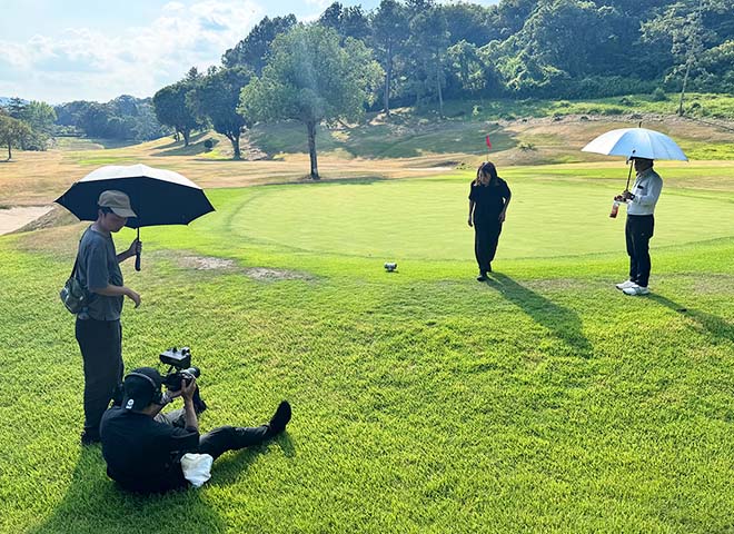 撮影はこちらも岡山県北が誇る名門ゴルフ俱楽部「久米カントリークラブ」様全面協力のもと実施。